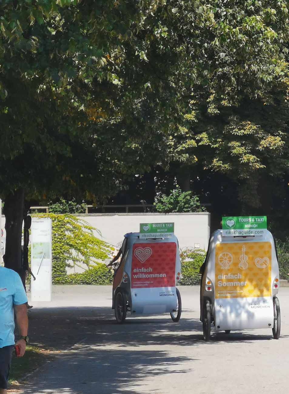 We rented a rikshaw in Munich, the one you can ride on your own. The experience was fantastic! When we arrived they told us everything about how to use it and we had a 15min training and many advices and suggestions about the places to go. The rikshaw was new, clean and very efficient. The staff was really helpful while booking online and also on the day of our visit. The office is quite near to the olimpic park you can ride through and from, to reach other nice places. To reach the office from the city centre you can go by metro+tram or bus. A bit expensive but it's worth it!