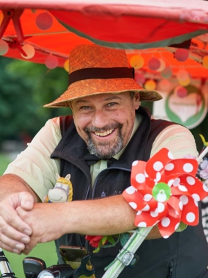 Hey, ich bin David, Schauspieler, Tänzer, Sänger Coach Lebenskünstler und staatlich geprüfter Heilpraktiker für Psychotherapie. Auch das Rikscha fahren hab ich zur Leidenschaft gemacht.