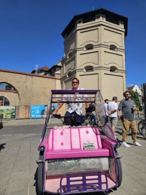 Servus und Moin, ich bin seit 2018 mit der Rikscha deutschlandweit unterwegs. Mein Antrieb ist die Freude, ich fahre schon seit ich denken kann Fahrrad und liebe den Austausch mit allen Menschen. Ich inspiriere und werde gerne inspiriert, meine Touren sind alles andere als langweilig und klassisch. Wir werden bei meinen Touren zusammen lachen, und die schönsten Plätze in München erkunden. In der Tourgestaltung bin ich flexibel. Ich kenne mich als ausgebildeter Stadtführer in meiner Heimat bestens aus. Du bist bei mir herzlich willkommen.