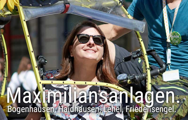 (1) Universität München, (2) Kirche St. Georg, (3) Monacensia im Hildebrandhaus, (4) Villa Stuck, (5) Friedensengel, (6) Ludwig II Denkmal, (7) Wiener Platz, (8) Maximilianeum, (9) Praterinsel, (10) Kirche St. Lukas, (11) Vater-Rhein-Brunnen, (12) Ludwigsbrücke, (13) Kulturzentrum am Gasteig, (14) Deutsches Museum, (15) Lehel, (16) Museum der Fünf Kontinente, (17) Maxmonument, (18) Klosterkirche St. Anna, (19) Surferwelle am Eisbach